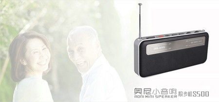 奥尼小音响散步机S500是全国首款专为中老年人群体打造的老人小音响,该款老人小音响的造型采用传统收音机方正造型,正面配备网罩设计,沉稳大气。配备高亮LED显示屏,室外日光下也能清晰可见字体;大按键、滚轮设计和全中文标识符合老人的操作习惯,并开创了老人小音响的先河。采用了大音量、高音足的设计,符合父亲这一辈人的听觉习惯。